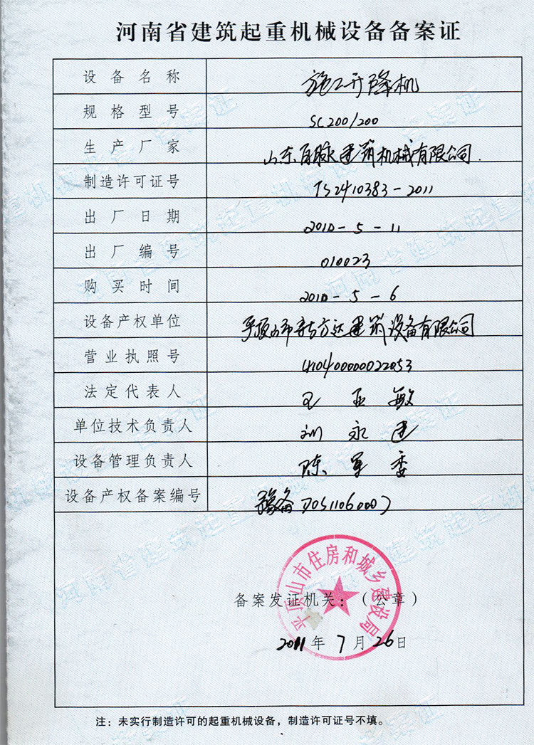 百脈建機 SC200施工升降機 2噸