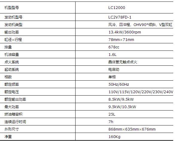 隆鑫 LC12000 10W系列發電機組