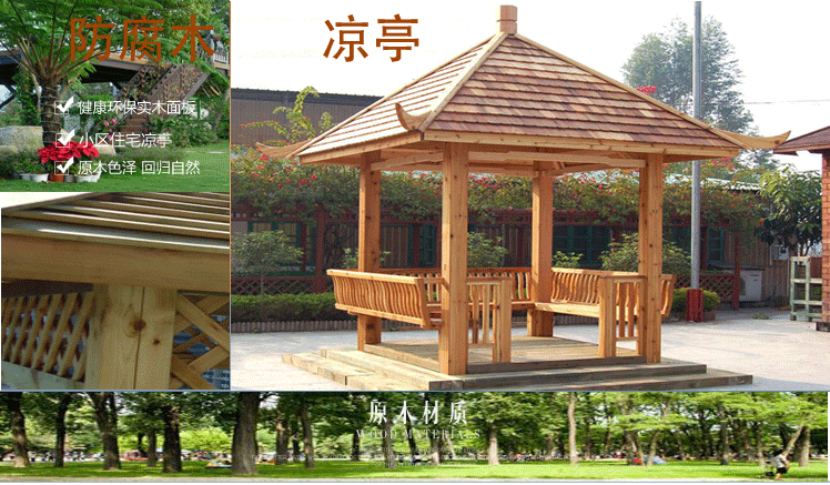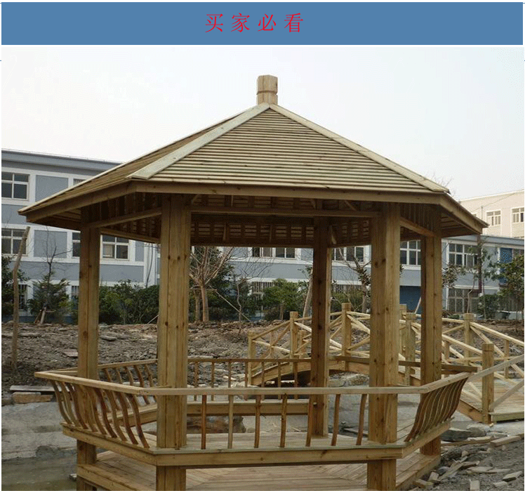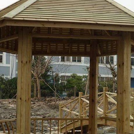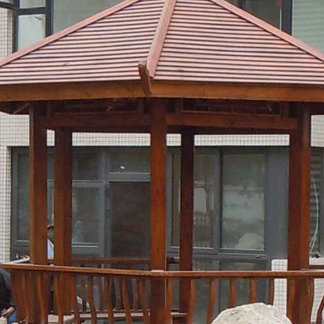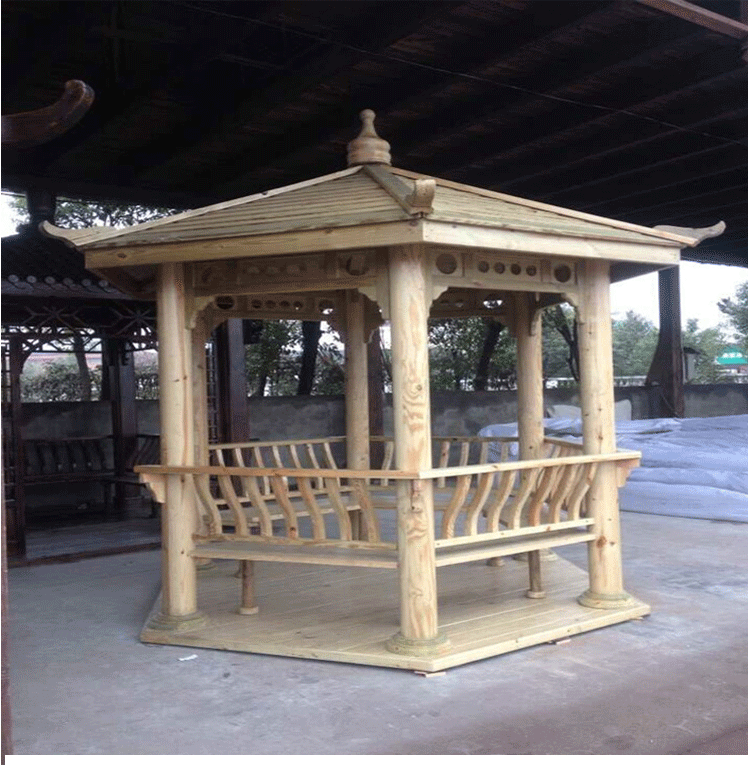 永之盛 防腐木戶外涼亭碳化實木六角涼亭別墅涼亭園藝涼亭公園避風雨涼亭 3925*3000*2900