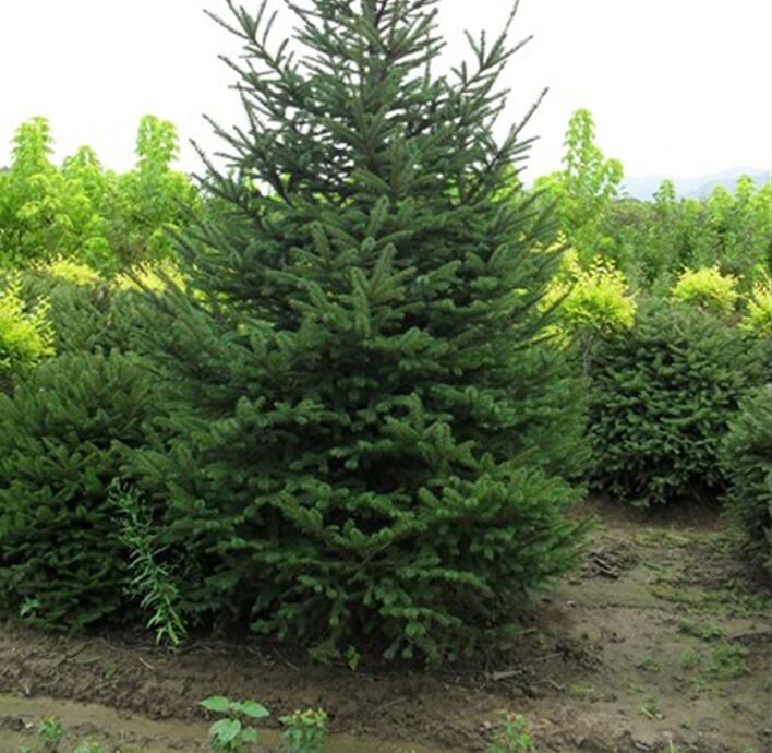 ? ? ? ?許多云杉樹的特征具有下垂的枝,整顆樹層層排列。直挺的針狀葉呈螺旋形圍繞著莖,長度為2~3 厘米。葉從椿處長出來,如果脫落,椿便會保留下來。木質球果懸吊著,卵石形成圓柱形,有向內彎曲的苞片,當球果成熟時,這些苞片會張開以讓種子脫落。云杉為高大喬木的針葉樹種,高約45米,胸徑l米,樹冠為狹圓錐形,樹皮灰色,呈鱗片狀脫落,大枝平展,小枝上有毛,一年生枝黃褐色。葉四棱狀條形,彎曲,呈粉狀青綠色,先端尖,四面有氣孔線,葉長1~2厘米,葉在枝上呈螺旋狀排列?;▎涡?,雌雄同株,5月開花,10月球果成熟,具有周期性結實現象,一般4-5年出現1次豐年,歉年的種子品質差,發芽率低。種子千粒重3.6-4.6克,每公斤種子250000-350000粒,發芽率20-45%。種子用麻袋普通干藏,2-3年后發芽率降低8-15%,低溫密封干藏,5年發芽率只降低5%。