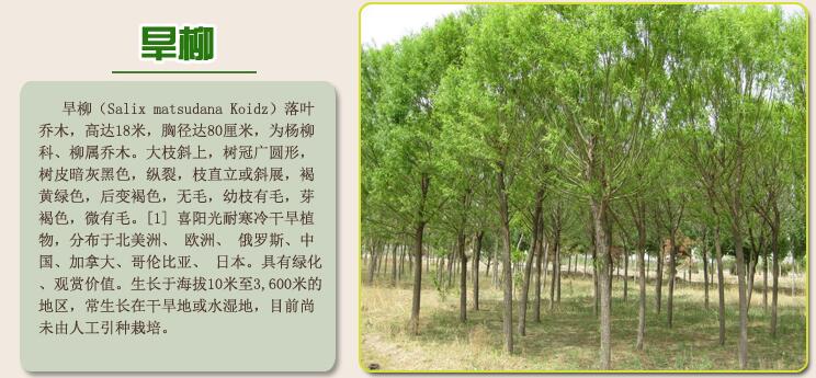 ? ? ? ?直柳又名旱柳,立柳。為落葉喬木;高達18米。樹皮暗灰黑色,縱裂,枝直立或斜展,褐黃綠色,后變褐色,無毛,幼枝有毛;芽褐色,微有毛。直柳以中國黃河流域為栽培中心,東北、東北平原,黃土高原,西至甘肅、青海等皆有栽培。是中國北方平原地區最常見的鄉土樹種之一。