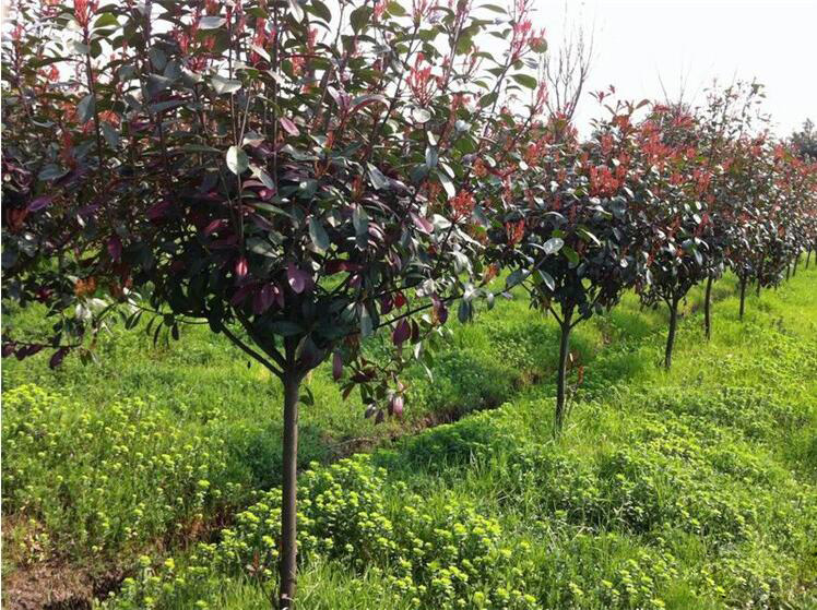 紅葉石楠生長速度快,且萌芽性強,耐修剪,可根據(jù)園林造景需要修剪培育各種造型。一至二年生的紅葉石楠可修剪成矮球或矮籬;三年生以上的中大苗可進行高桿造型,孤植或群植成大型綠籬或幕墻,在居住區(qū),廠區(qū)綠地、街道或公路隔離帶中應用,是全球綠化樹種中最為時尚的紅葉系列樹種。